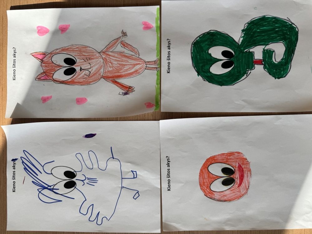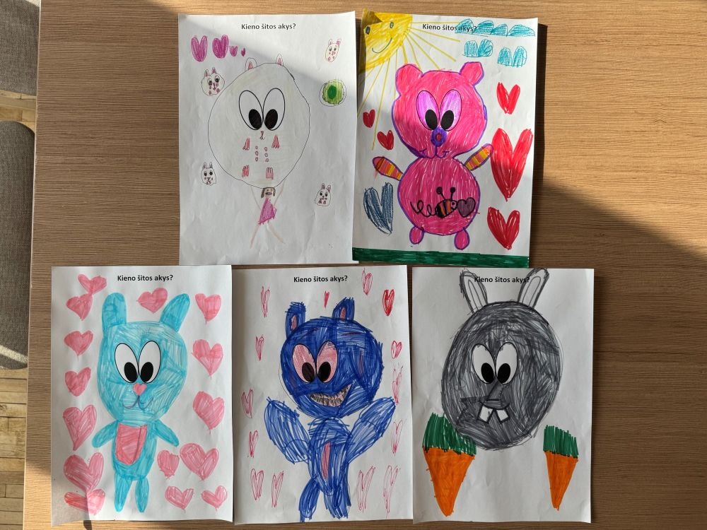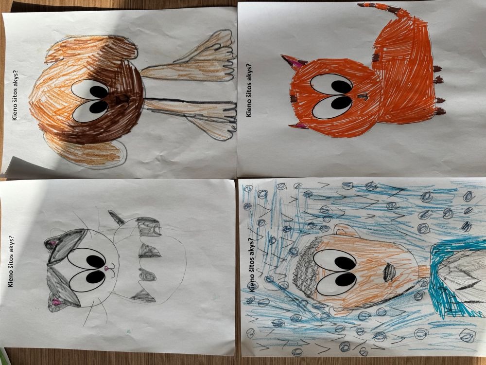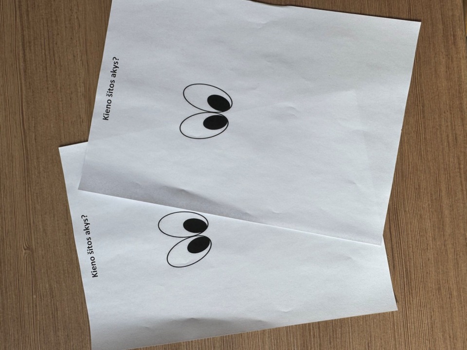 „Kieno šitos akys?“ - tai smagus ir įtraukiantis žaidimas, kuriame dalyviai turi atspėti, kam priklauso popieriaus lape matomos akys. Šis žaidimas skatina pastabumą, bendravimą ir kuria gerą nuotaiką! Kviečiame peržiūrėti nuotraukas ir pamatyti, kaip pirmokai kartu su mokytoja Viktorija kūrybiškai įsitraukė į žaidimą bei atskleidė savo vaizduotę!