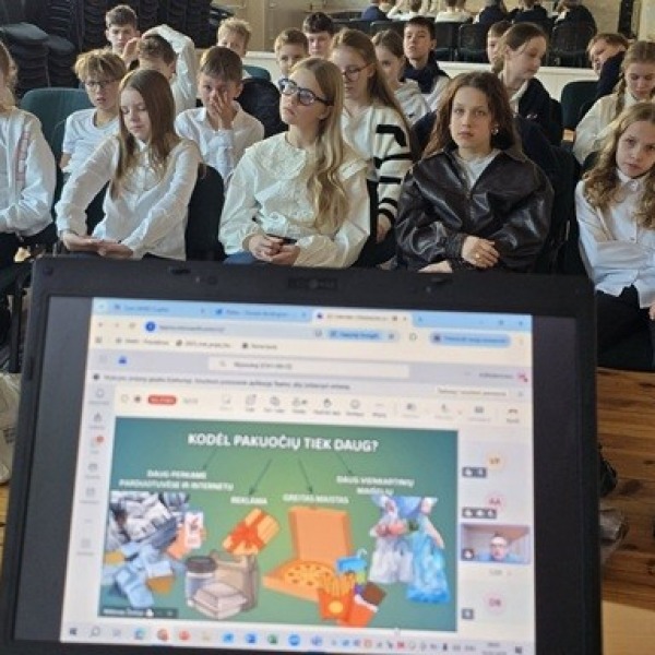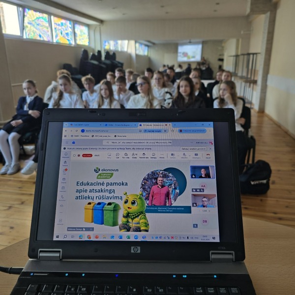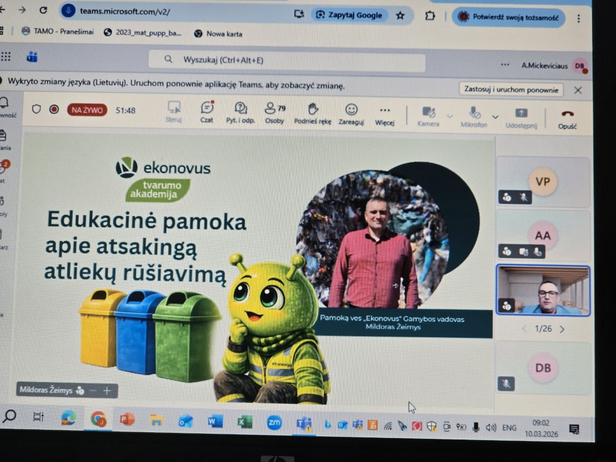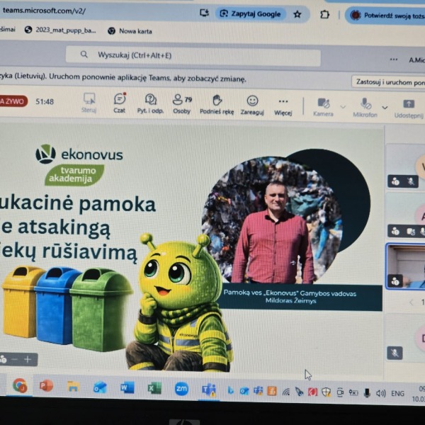 10 marca uczniowie klasy 5a uczestniczyli w edukacyjnej lekcji online o odpowiedzialnym segregowaniu odpadów. Zajęcia poprowadził kierownik produkcji firmy Ekonovus – Mildoras Žeimys.