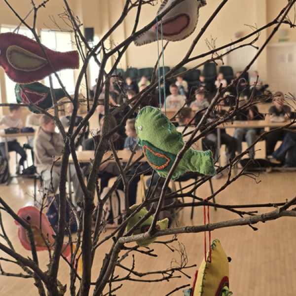 Wydarzeniu towarzyszyła wystawa plakatów „Wiosenne przyloty ptaków”. Uczniowie przygotowali prace przedstawiające ptaki wracające na Litwę wiosną, takie jak bociany, jaskółki, skowronki i żurawie, wraz z krótkimi opisami. Barwna wystawa pokazuje kreatywność oraz wiedzę uczniów.