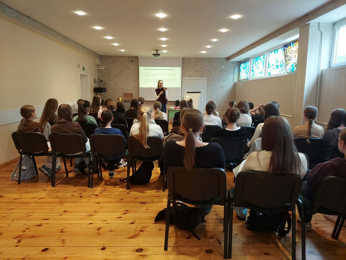Warsztaty zostały zrealizowane w ramach współpracy z fundacją i stanowiły kontynuację wcześniejszych spotkań online. Idea „Różowej Skrzyneczki” spotkała się z bardzo pozytywnym odbiorem wśród uczennic liceum, które – wypełniając ankietę zgłoszeniową – wyraziły chęć uczestnictwa w takich zajęciach w formie stacjonarnej.